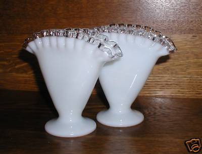 Fenton SILVER CREST Ruffled Rim White Milk Glass Vases