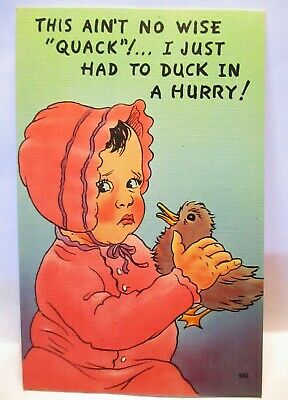 Title (ebay affiliate link): 1940s POSTCARD BABY WITH DUCKLING,THIS AIN''T NO WISE QUACK, I JUST HAD TO DUCK