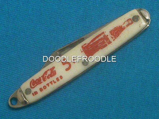 VINTAGE USA COCA-COLA COKE AD POCKET WATCH FOB KEY CHAIN KNIFE KNIVES OLD TOOLS