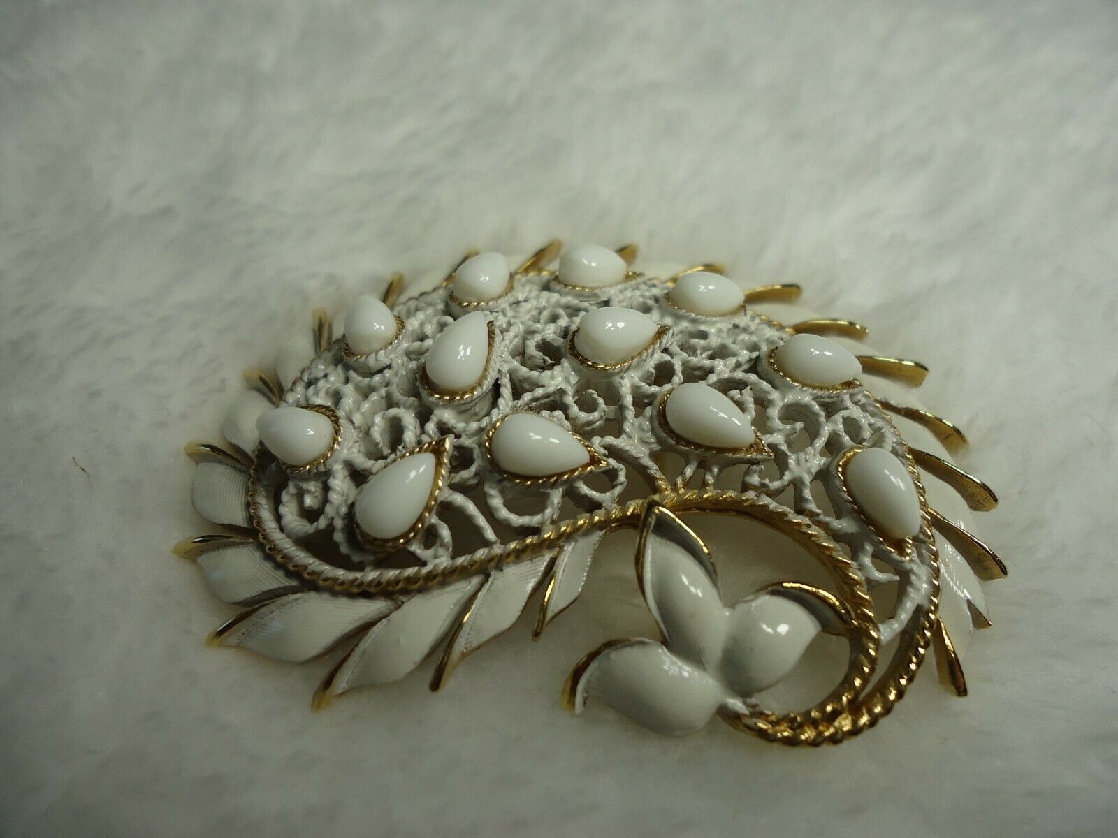 Title (ebay affiliate link): Vintage Crown Trifari Enamel Milk Glass & Gold Tone Paisley Pin / Brooch ...Nice