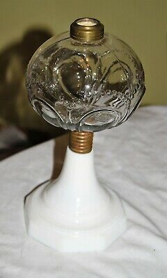 Title (ebay affiliate link): Antique oil lamp , milk glass octagon base, loop design font 10" tall