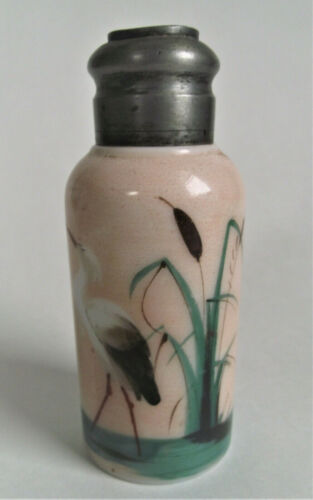 Antique Victorian STORK BIRD Painted MILK GLASS PILLAR SALT SHAKER Mt Washington