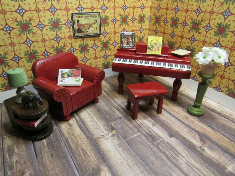 Strombecker MUSIC ROOM w/ PLANT STAND, Vintage Wooden Wood Dollhouse Furniture
