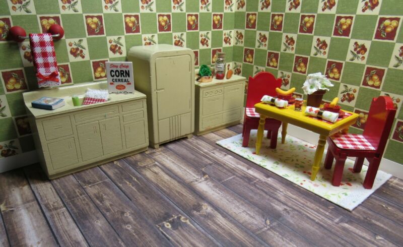 Title (ebay affiliate link): Strombecker KITCHEN APPLIANCE & DINING SET, Vintage Wooden Dollhouse Furniture