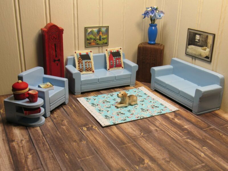 Strombecker SEVEN PIECE LIVING ROOM, Vintage Wood Wooden Dollhouse Furniture