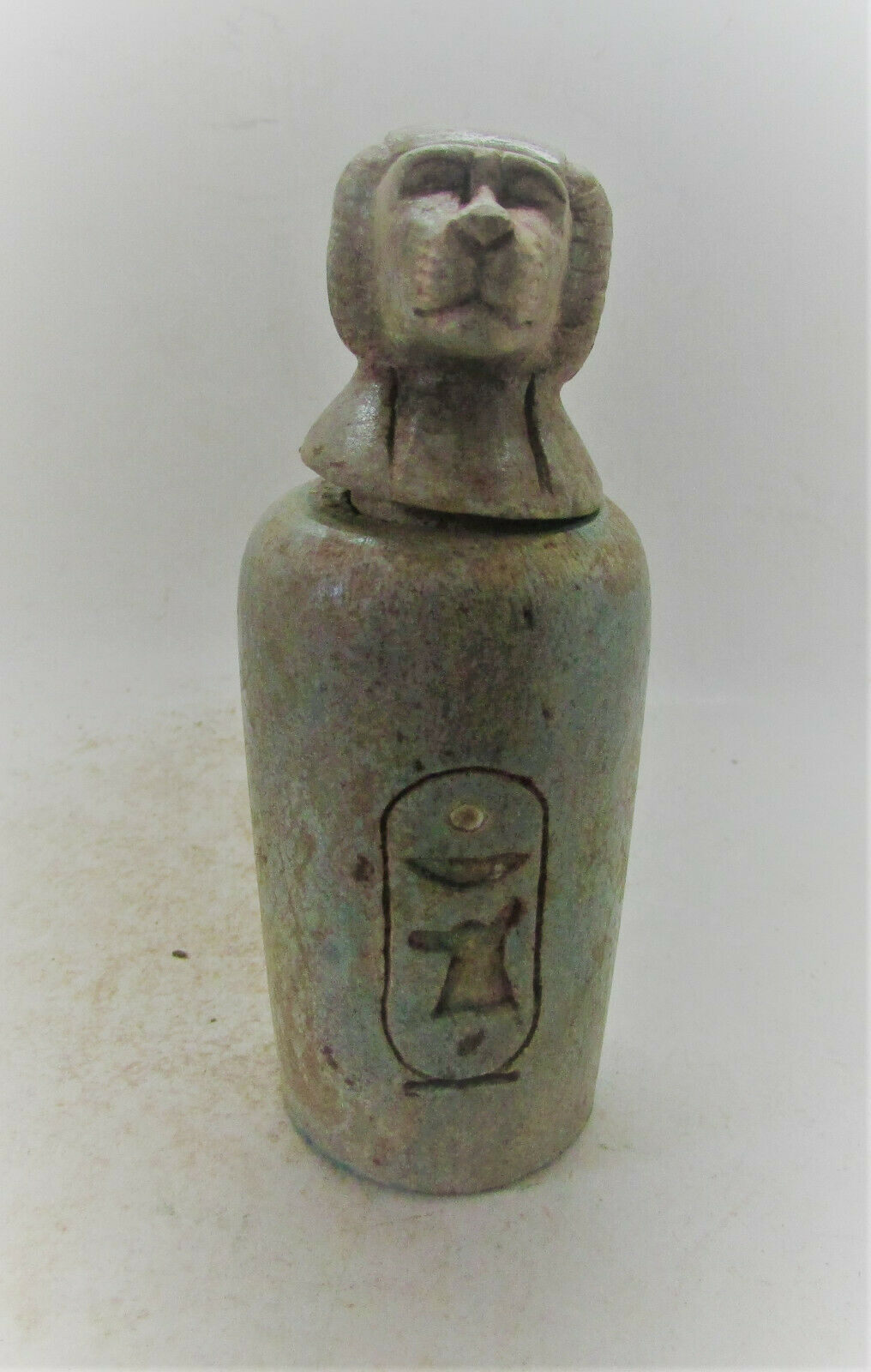 BEAUTIFUL ANCIENT EGYPTIAN STONE CANOPIC JAR W/ HEIROGLYPHS