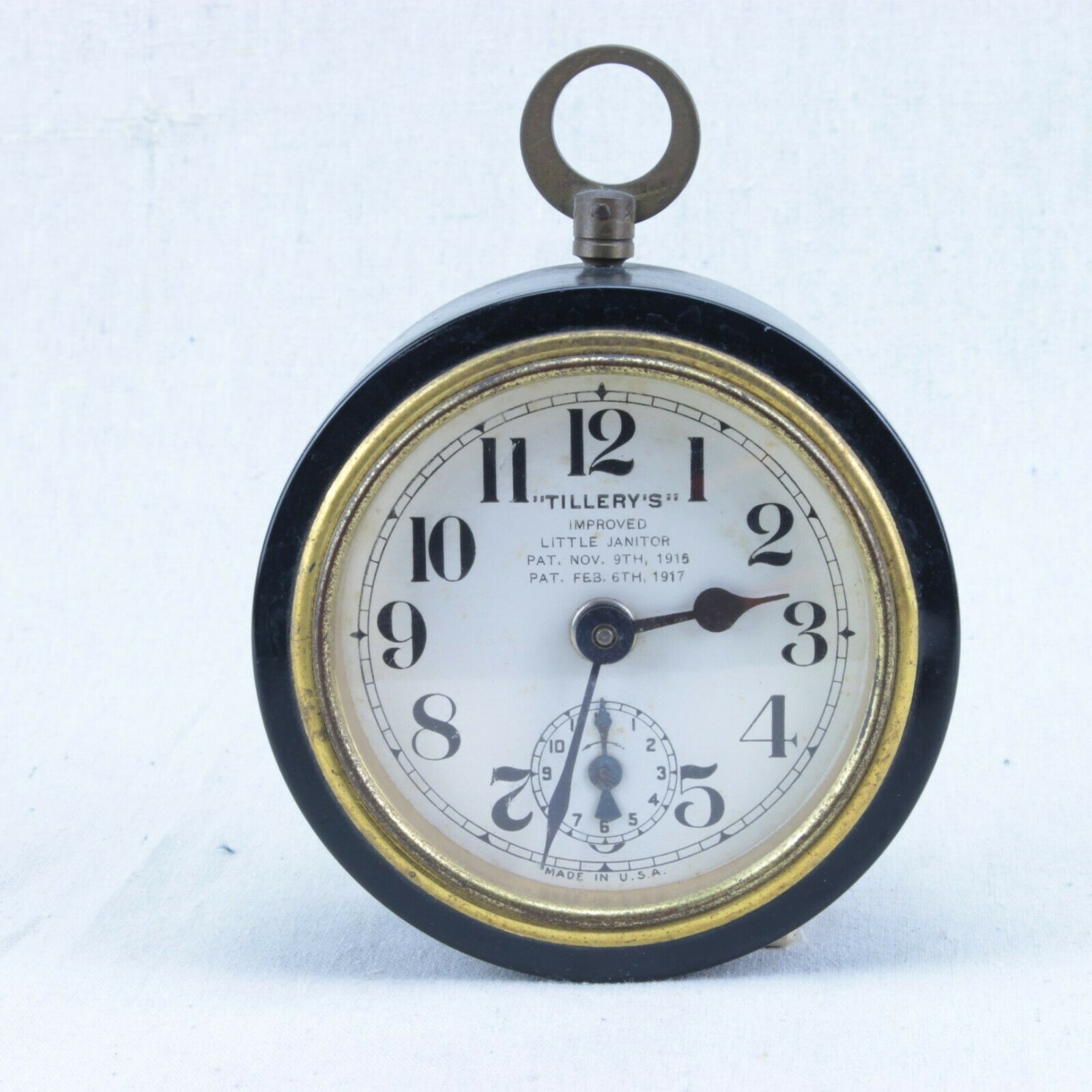 Title (ebay affiliate link): Tillery''s Little Janitor Clock Vintage Metal Furnace Alarm Wind Up 1917 Antique