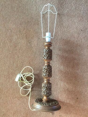 VINTAGE ATTRACTIVE CARVED WOOD OAK(?)TABLE LAMP