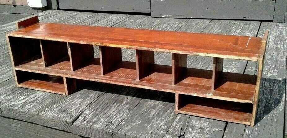 Title (ebay affiliate link): Vintage Maple Desk Cubby Pigeon Holes Compartments Old Red Finish