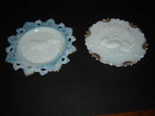 TWO LOVELY ANTIQUE MILK GLASS PLATES!!!