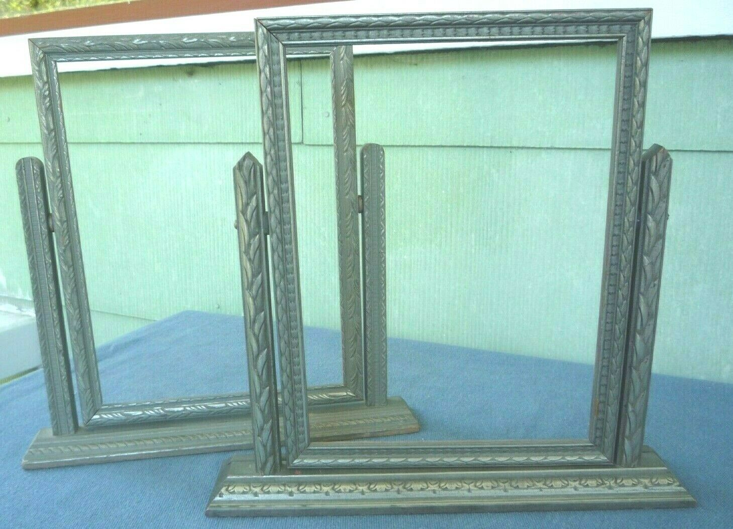 2 Vintage 1930''s ART DECO SILVER ornate Wood SWING Picture Frames Frame 5x8