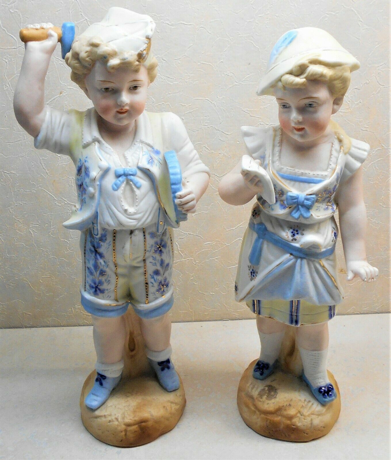 RARE Pair GEBRUDER HEUBACH GERMAN Bisque Figurines BOY & GIRL Musicians