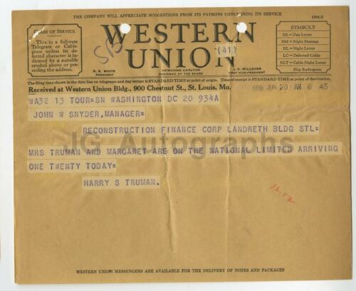 Title (ebay affiliate link): Harry S. Truman 1943 Telegram Sent to Future Secretary of Treas. John Snyder