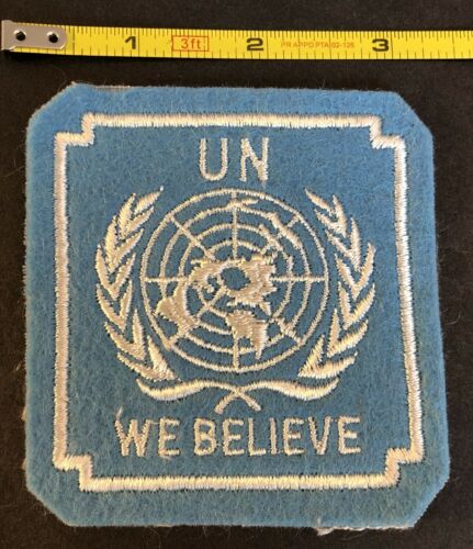 Title (ebay affiliate link): Vintage United Nations WE BELIEVE Felt Patch, Sew-on UN