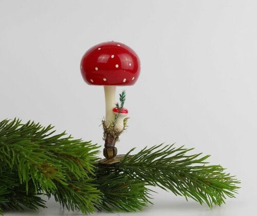 Title (ebay affiliate link): Vintage Glass,Spun Cotton,Christmas Ornaments,Toadstool on a clip