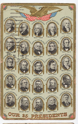Title (ebay affiliate link): POSTCARD c1910 OUR 25 PRESIDENTS & TERMS OF OFFICE