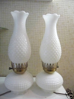 VINTAGE Hobnail Milk Glass Table Pamp Pair-Works Great