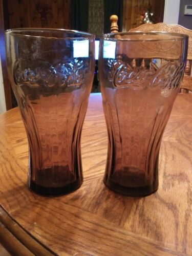 Title (ebay affiliate link): VINTAGE COCA- COLA COKE Glasses 6" Tall Set of 2 ~ Smokey Brown Colored Soda Gls