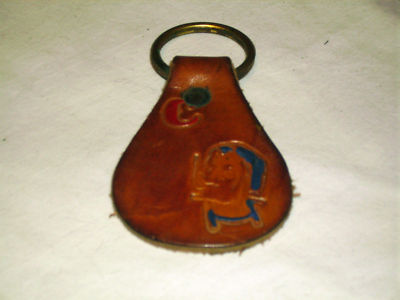 RARE 1970'S ORIG. TOOLED LEATHER ZIG ZAG MAN KEY RING