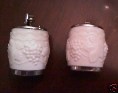 Pair of Milk Glass Salt Shaker Pepper grinder Grapevine
