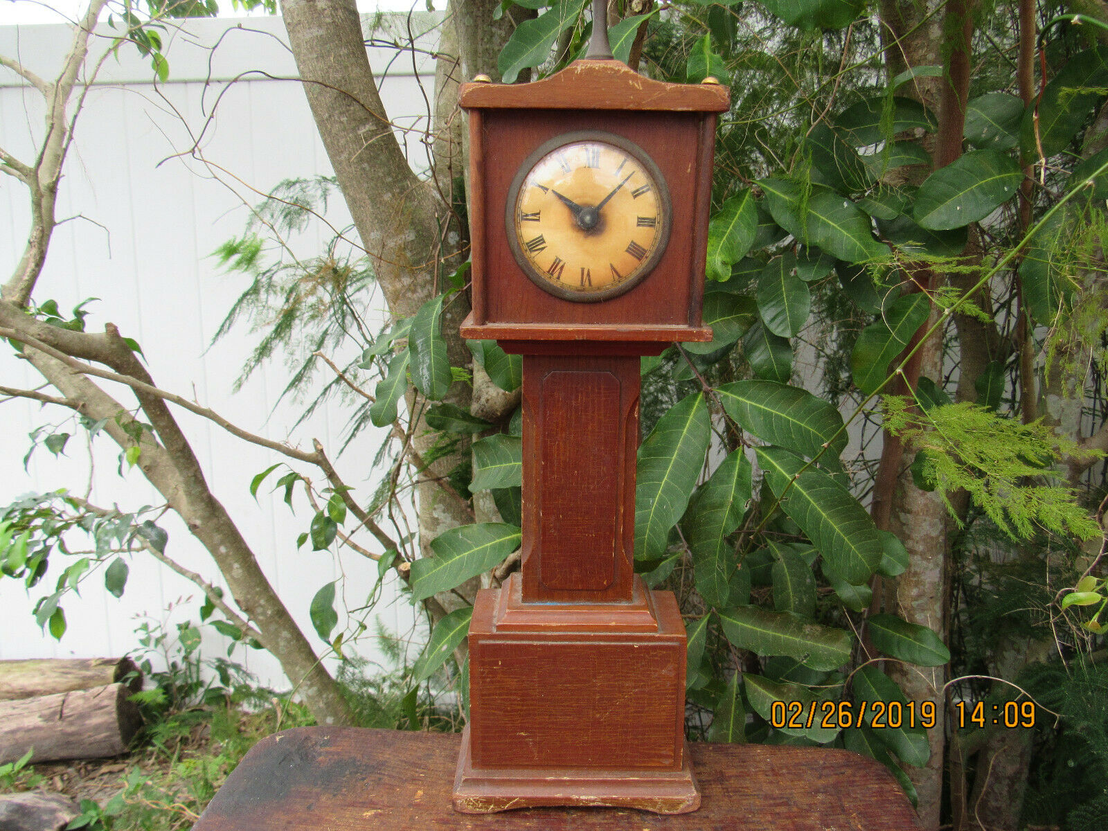 Title (ebay affiliate link): Antique 12" Miniature "Early American/Colonial" Grandfather by:The BURROUGHS Co.