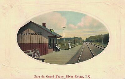 QUEBEC,RIVER ROUGE, GARE DU GRAND TRONC, 1911, PASSENGERS, BICYCLE, TRACKS