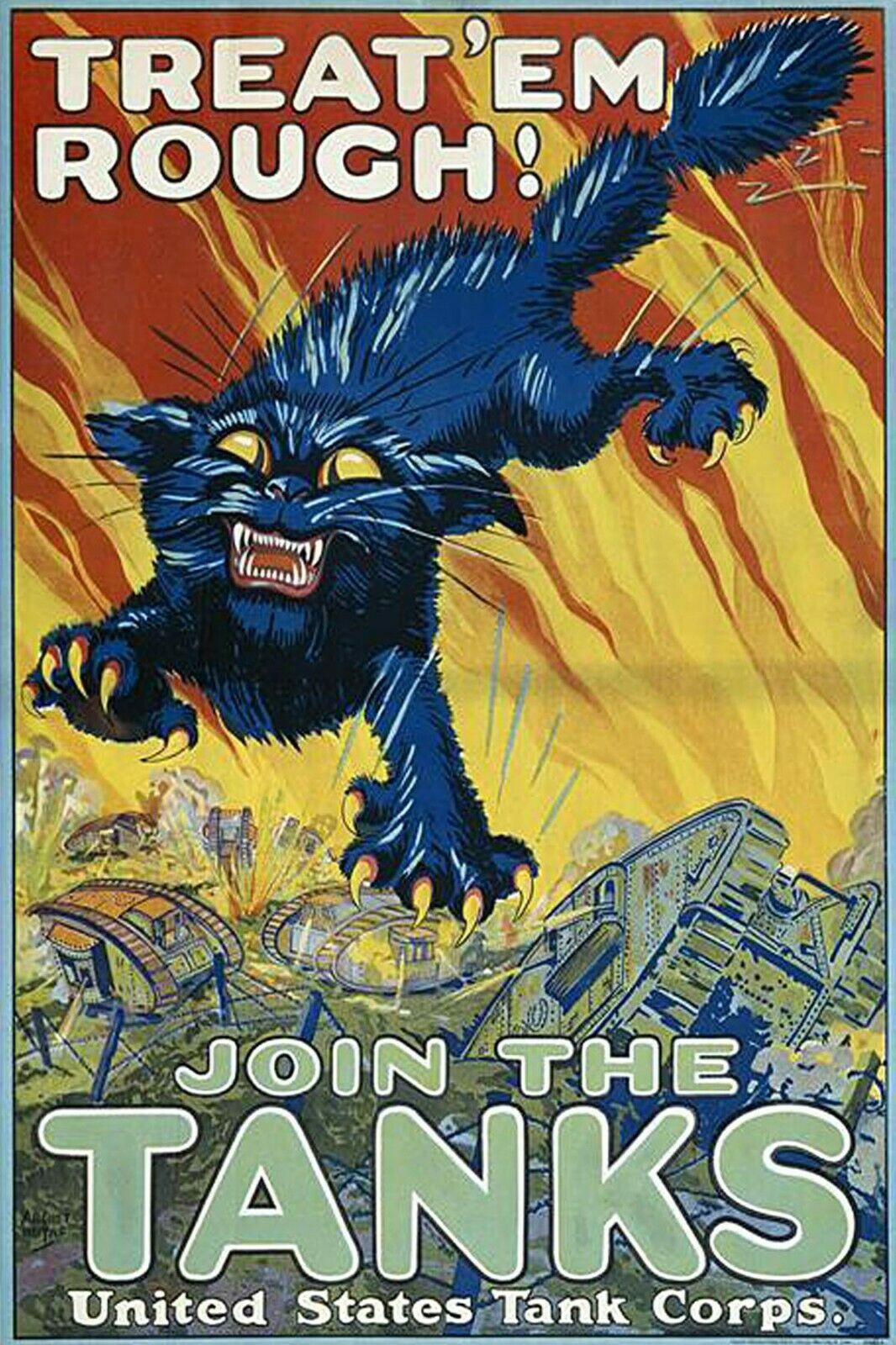 Title (ebay affiliate link): 1941 WW2 USA AMERICA ARMY SOLDIER CAT JOIN TANK CORPS WAR PROPAGANDA Postcard