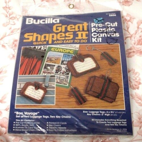 Title (ebay affiliate link): Vintage Bucilla Kit 5806 Great Shapes II Bon voyage Luggage Tags & Key chain NOS
