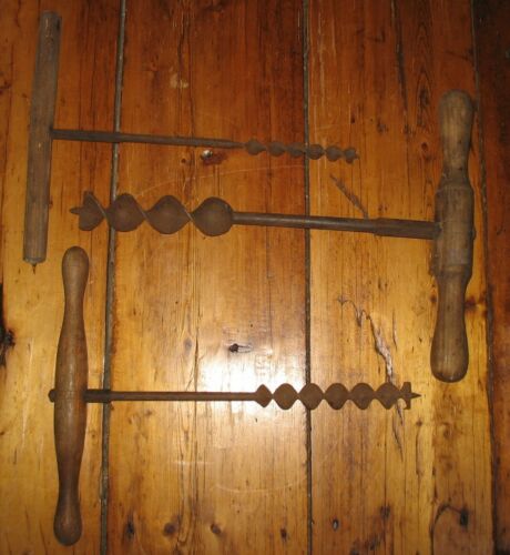 Title (ebay affiliate link): lot of 3 Antique Hand Auger Drill Barn Beam Timber Frame Borers