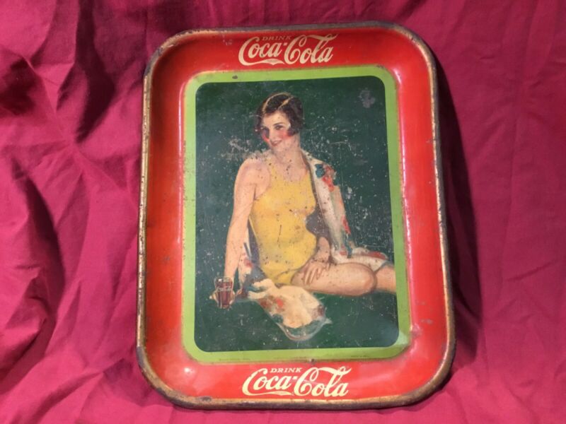 Title (ebay affiliate link): 1929 Antique Coca Cola Soda Fountain Tray Girl in Bathing Suit Authentic