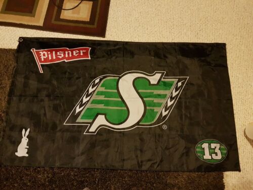 Title (ebay affiliate link): Old Style Pilsner Saskatchewan Roughriders CFL Flag Black No. 13