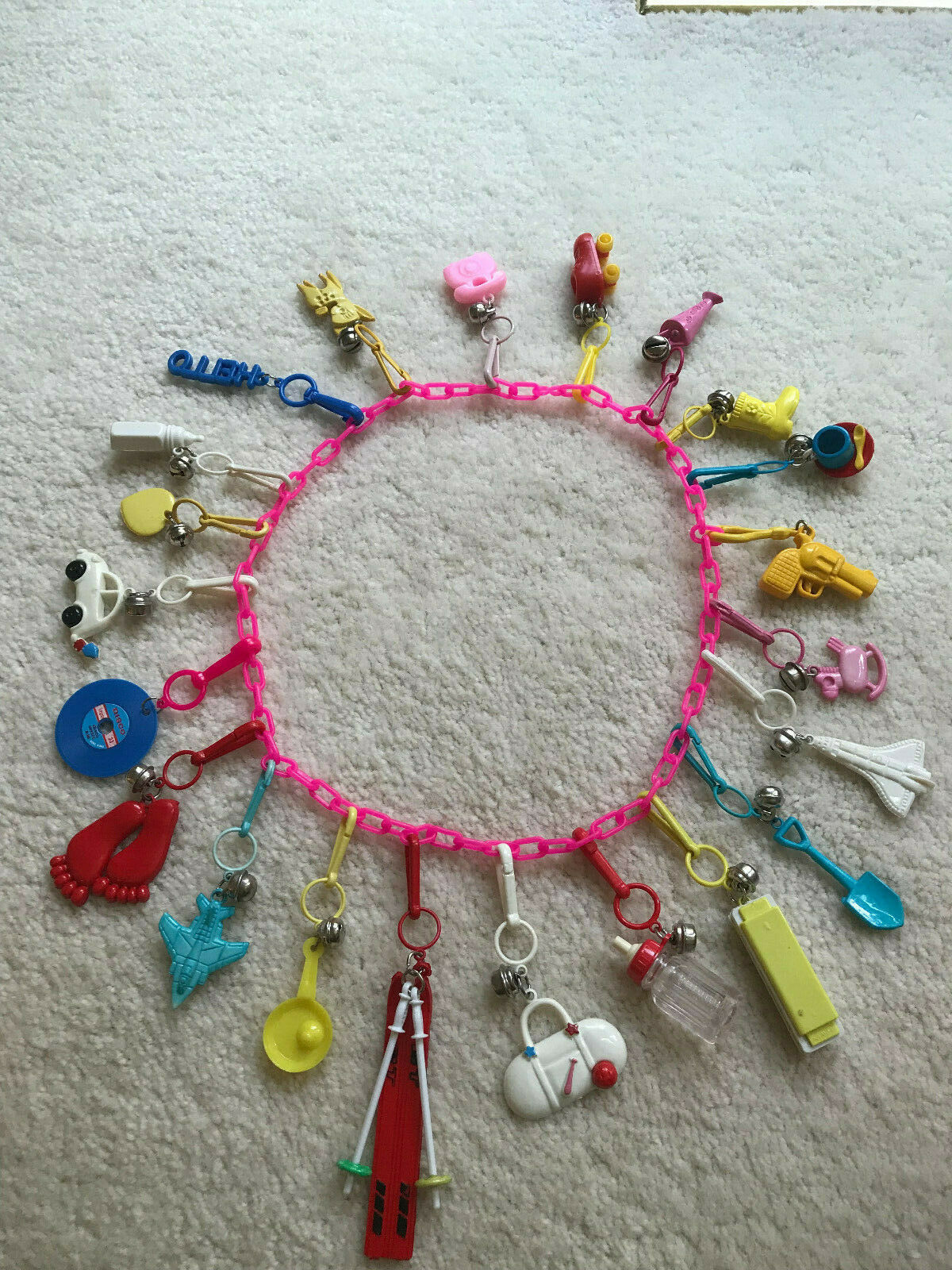 Title (ebay affiliate link): 1980''s BELL CLIP CHARM NECKLACE WITH OVER 20 PLASTIC 80''S CHARMS! VINTAGE! #1