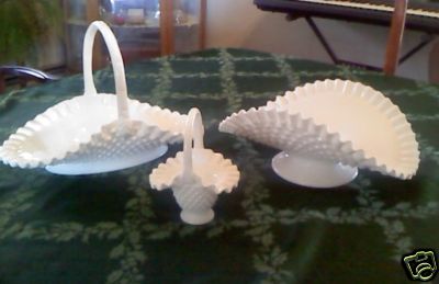 3 pieces Fenton Milk Glass Hobnail Baskets Bowl