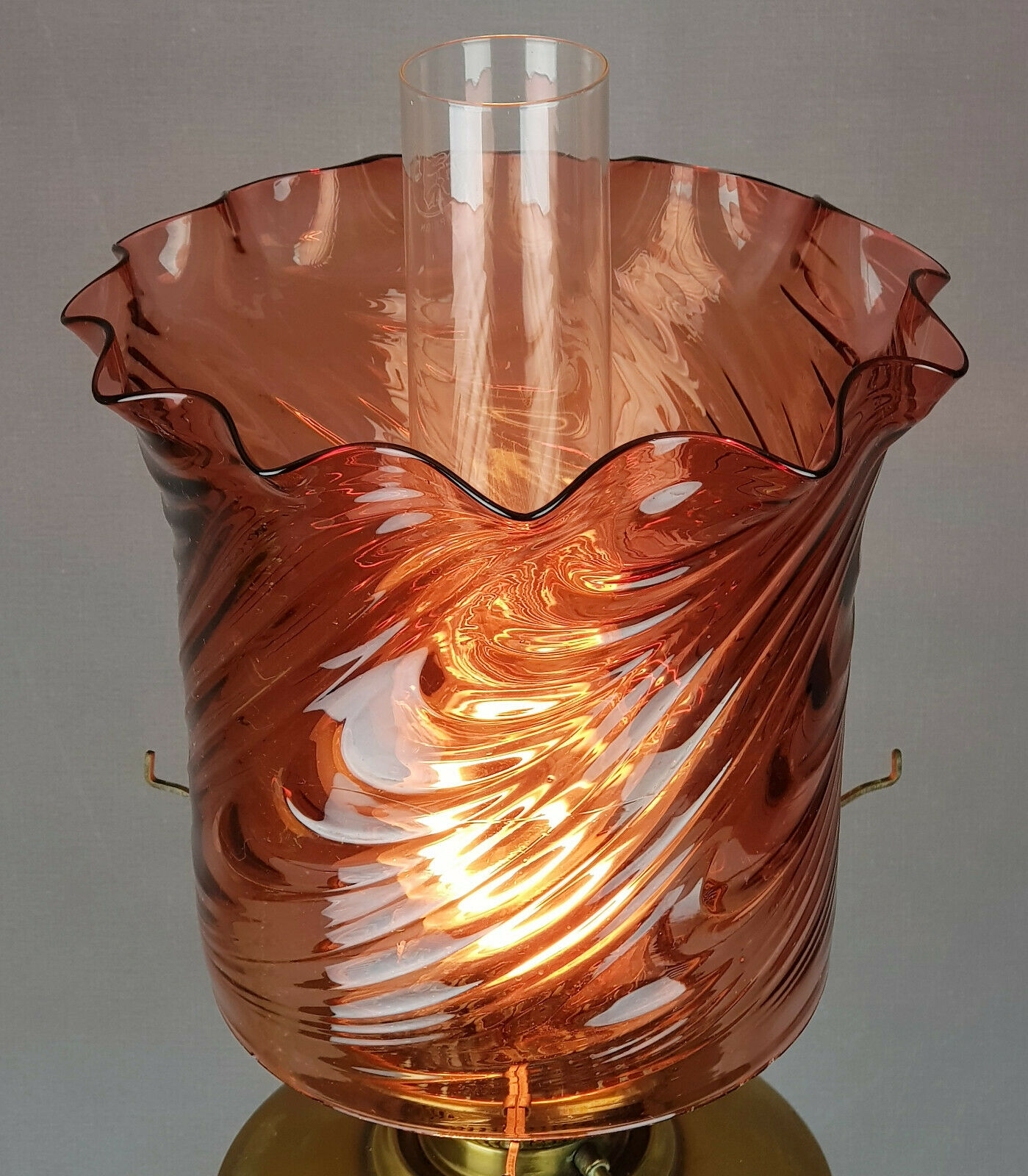 Title (ebay affiliate link): Victorian Cranberry / Rose Glass Kerosene Oil Gas or Candle Hall Lamp Shade