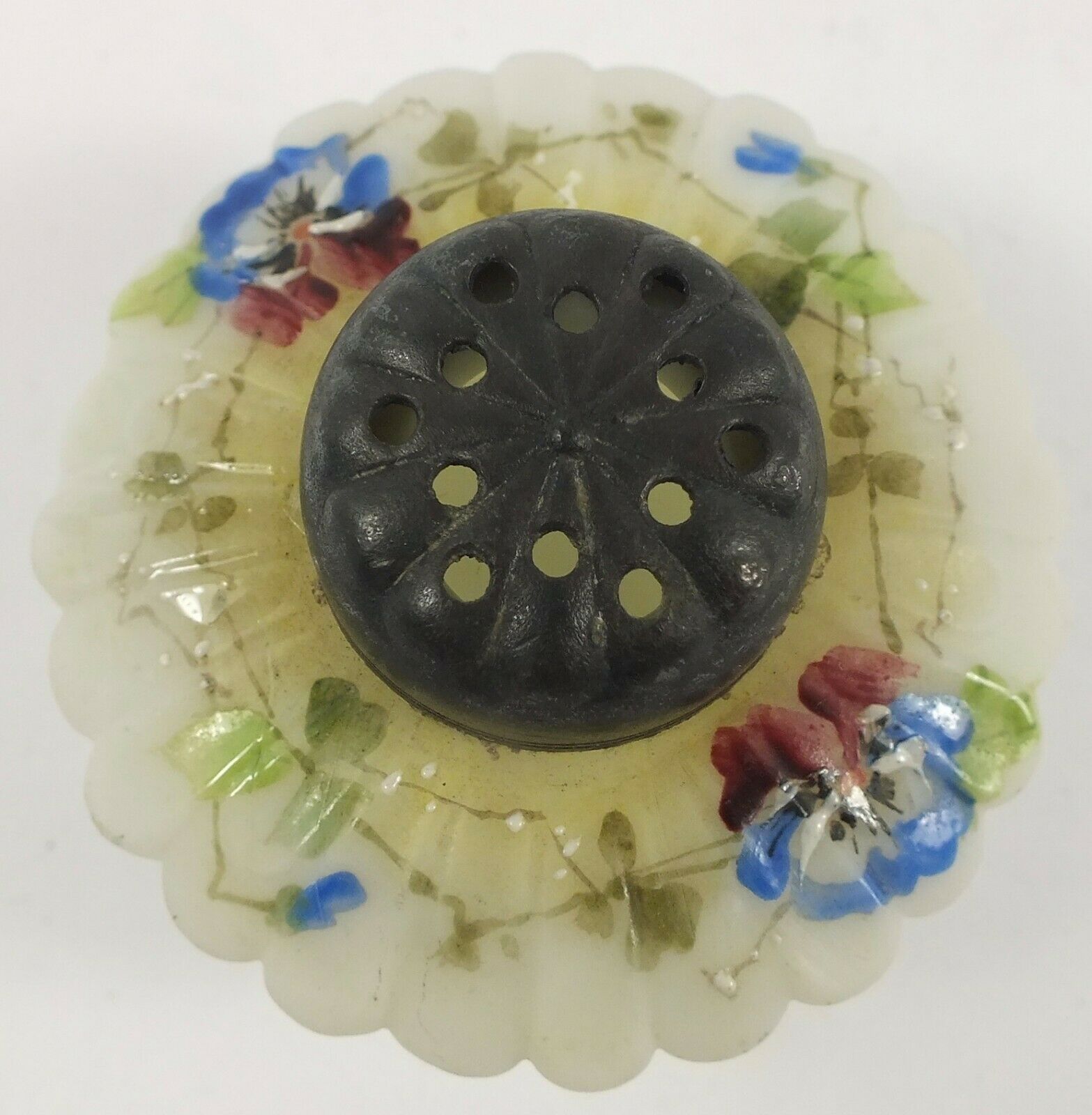 Gorgeous Antique Wavecrest Shasta Daisy Glass Salt Shaker W/ Blue Pansies