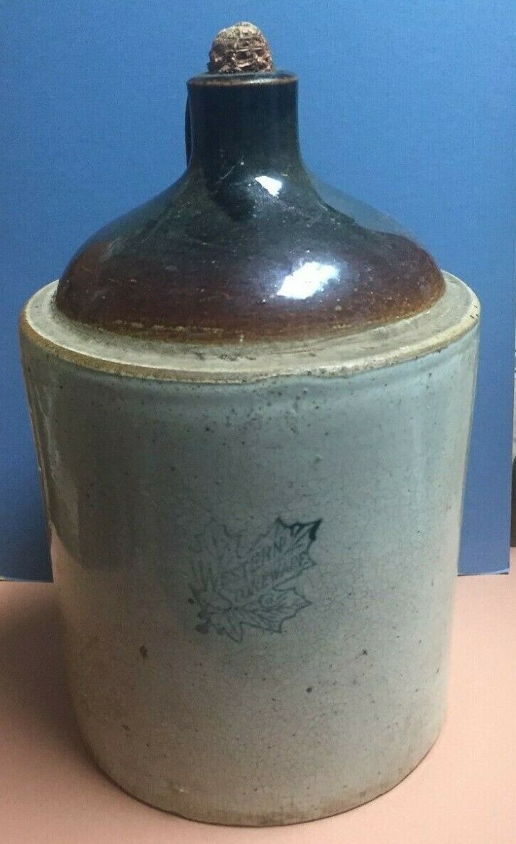 Title (ebay affiliate link): MAPLE LEAF - WESTERN STONEWARE CO. 1 Gallon Moonshine Whiskey Jug 1920-30''s