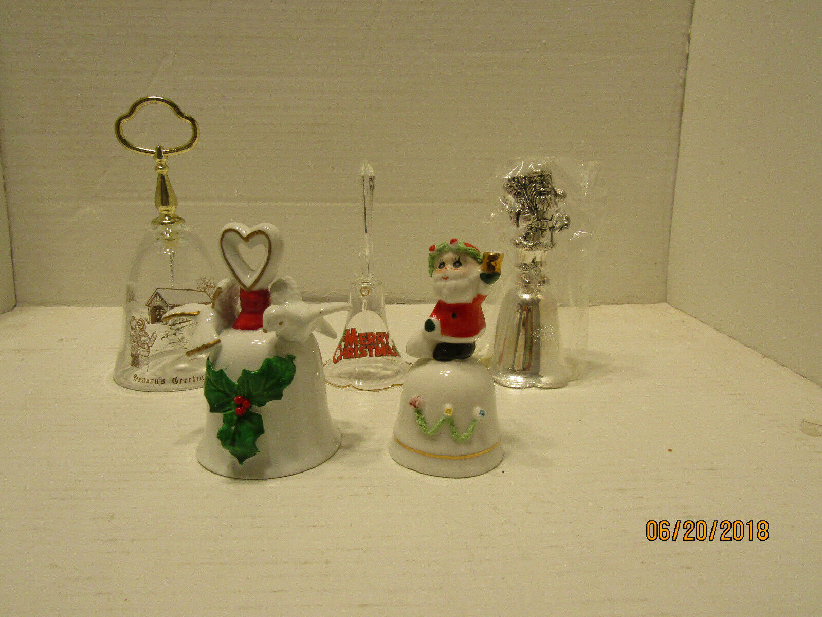 Title (ebay affiliate link): JUNK DRAWER LOT OF 5 CHRISTMAS THEME COLLECTORS BELLS GLASS CERAMIC METAL HANDLE
