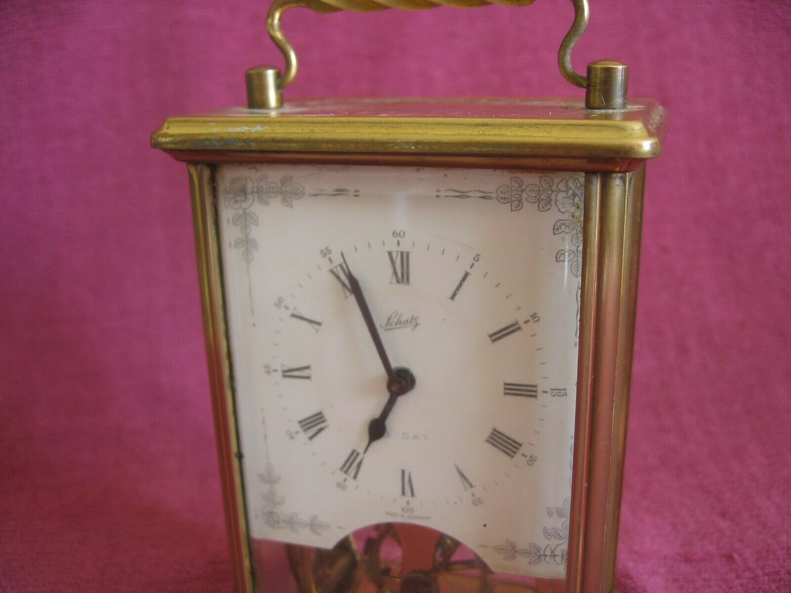 Title (ebay affiliate link): Vintage Schatz No. 59 Glass Cased 8 Day Carriage Mantle Clock - Spares or Repair