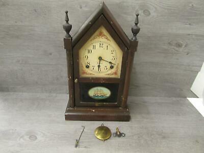 Antique Sessions Mantel Clock Wood Sailboat On Glass Untested Parts Repair