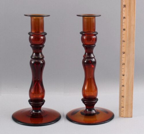 Title (ebay affiliate link): Pair Vintage Mid-20thC Pairpoint Amber Glass, Historic New England, Candlestick