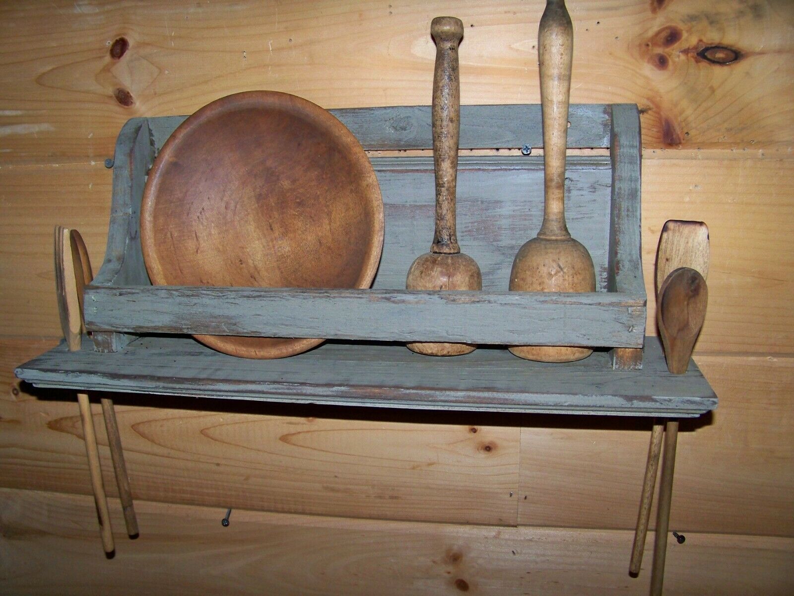 Title (ebay affiliate link): Primitive Painted Vintage Wood Wall Display Shelf For Bowls Mashers Spoons Etc
