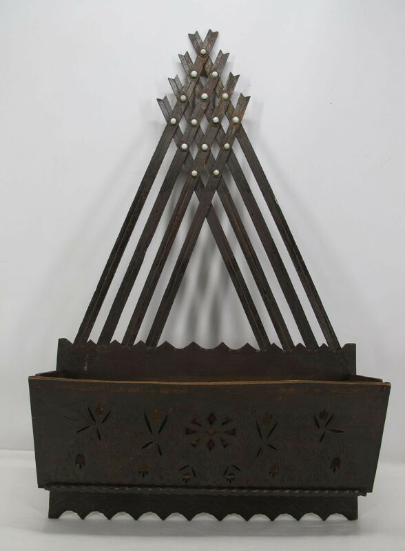 Title (ebay affiliate link): 19 C Victorian Tramp Art Magazine Rack Strap Wall Pocket Porcelain Buttons yqz