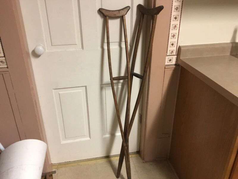 Pair 19th Century Primitive Split Wood Handmade Adult Crutches