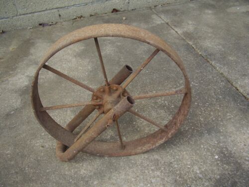 Antique Rustic Cart 15" Steel Spoke Wheel with axle steampunk