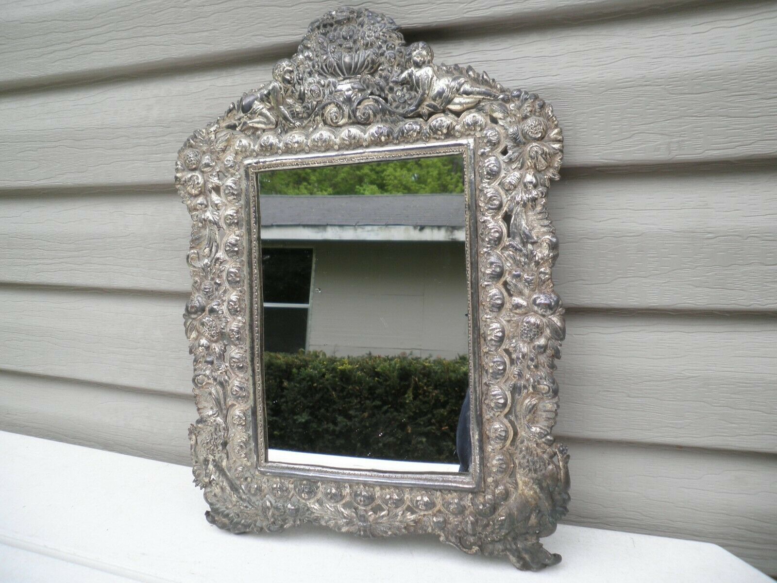 Title (ebay affiliate link): Antique Metal Mirror With Lions Cherubs 11" x 15 Old Ornate Unusual Mirror