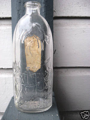 EMBOSSED NURSERY RHYME BABY MILK BOTTLE RARE LABEL