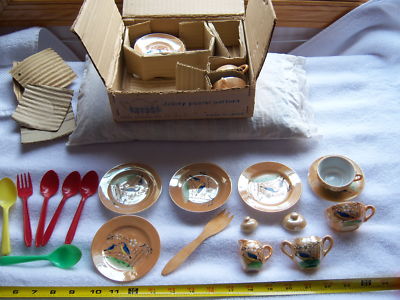 OPALESCENT HAND PAINTED ANTIQUE DOLL GIRL PLAY TEA SET