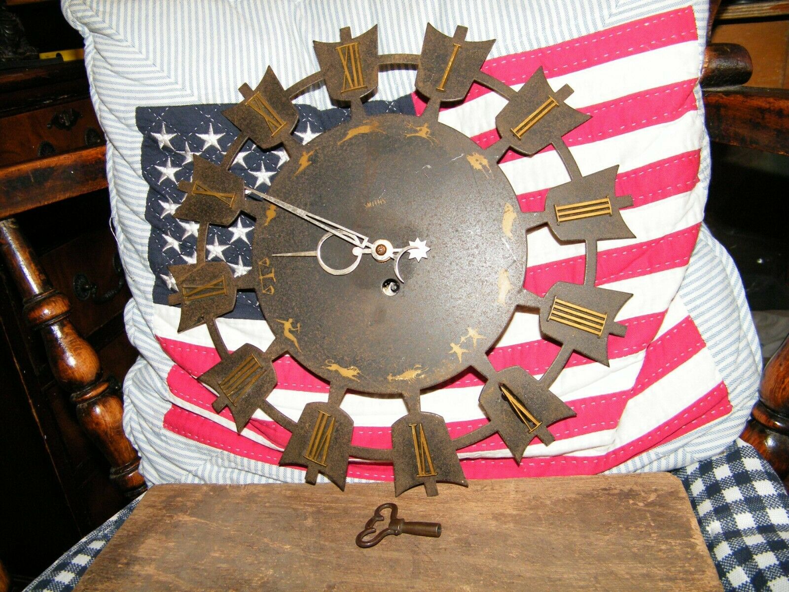 VINTAGE SMITH ZODIAC WALL CLOCK COMPLETE WITH KEY