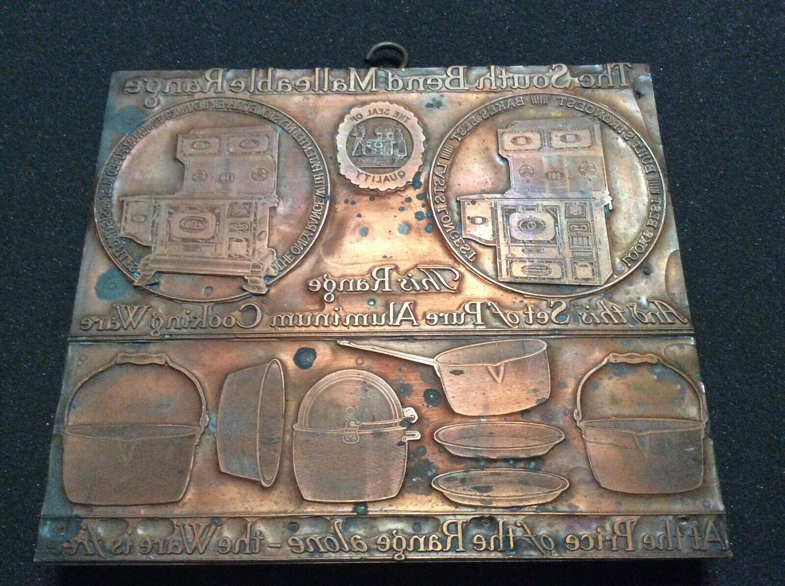 Title (ebay affiliate link): Vintage Copper South Bend Range Printing Plate Block