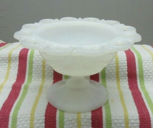 WHITE MILK GLASS ANCHOR HOCKING OPEN LACE PATTERN SMALL FOOTED BOWL
